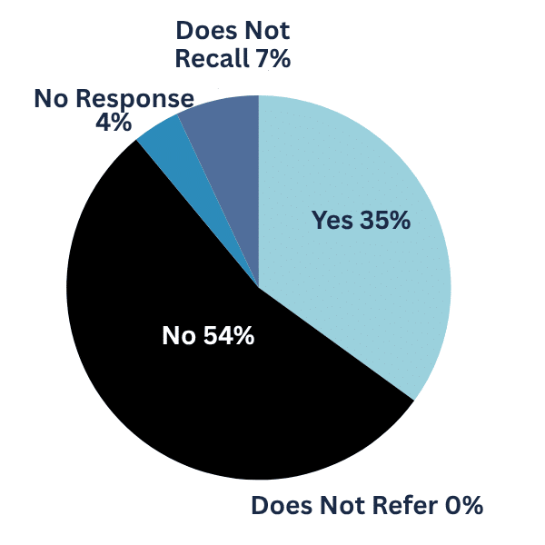Here is what we have learned from our own data. When asked whether they had referred a friend or colleague to our clients over the past six months, approximately 35% said yes. This number has remained relatively consistent over time and across the markets we serve.